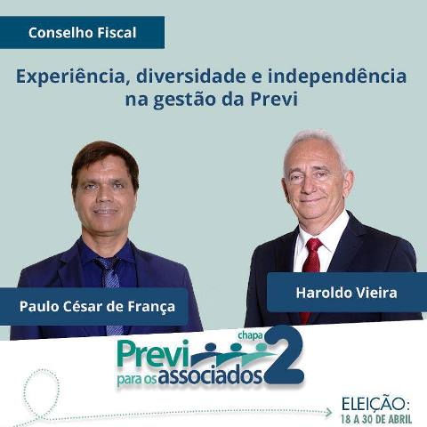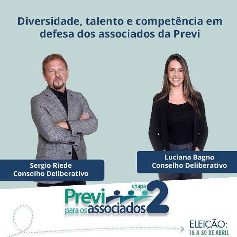 A Chapa 02 – Previ para os associados é composta por Paula Goto, filiada ao Previ Futuro, como candidata à diretoria de Planejamento e Márcio de Souza, atual gerente de benefícios da Previ, como candidato a diretor de Administração. Aos dois se somam mais 12 candidatos aos conselhos Deliberativo, Fiscal e Consultivo; todos trazendo na bagagem experiência de gestão e compromisso com a defesa dos direitos dos associados. Com a missão de trabalhar para proteger o patrimônio de quase 200 mil participantes da Previ e pela ampliação de seus direitos.