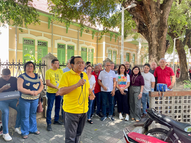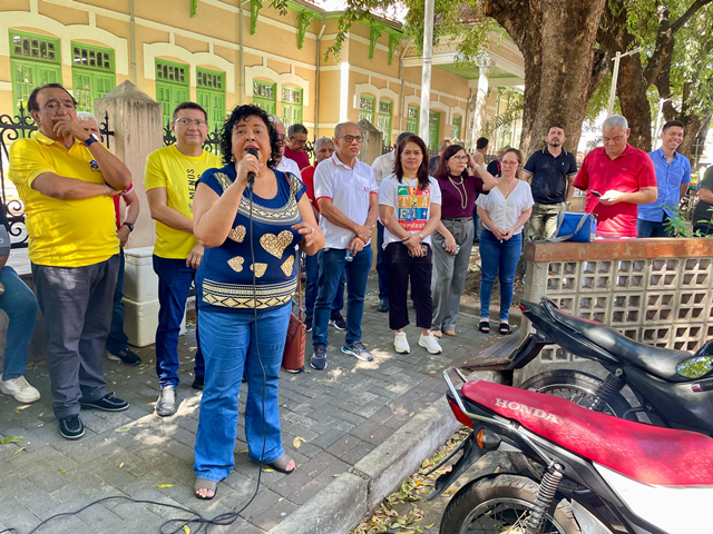 “O Sindicato dos Bancários do Piauí juntamente com funcionários e funcionárias do Banco do Brasil está fazendo essa manifestação porque na semana passada essa instituição Banco do Brasil foi covardemente atacada nas redes sociais e nós não podemos permitir que isso aconteça. Por isso, estamos aqui em defesa desse patrimônio do povo brasileiro e porque soberania não se negocia. O Banco do Brasil tem como missão atender a população, e promover o desenvolvimento nas mais distantes regiões do país. Defender o BB é também defender milhares de empregos de homens e mulheres que tiram daqui o seu sustento e de suas famílias. Não podemos permitir que um banco com 216 anos seja ameaçado nas redes sociais de forma covarde e mentirosa”, afirmou Gilberto Soares.