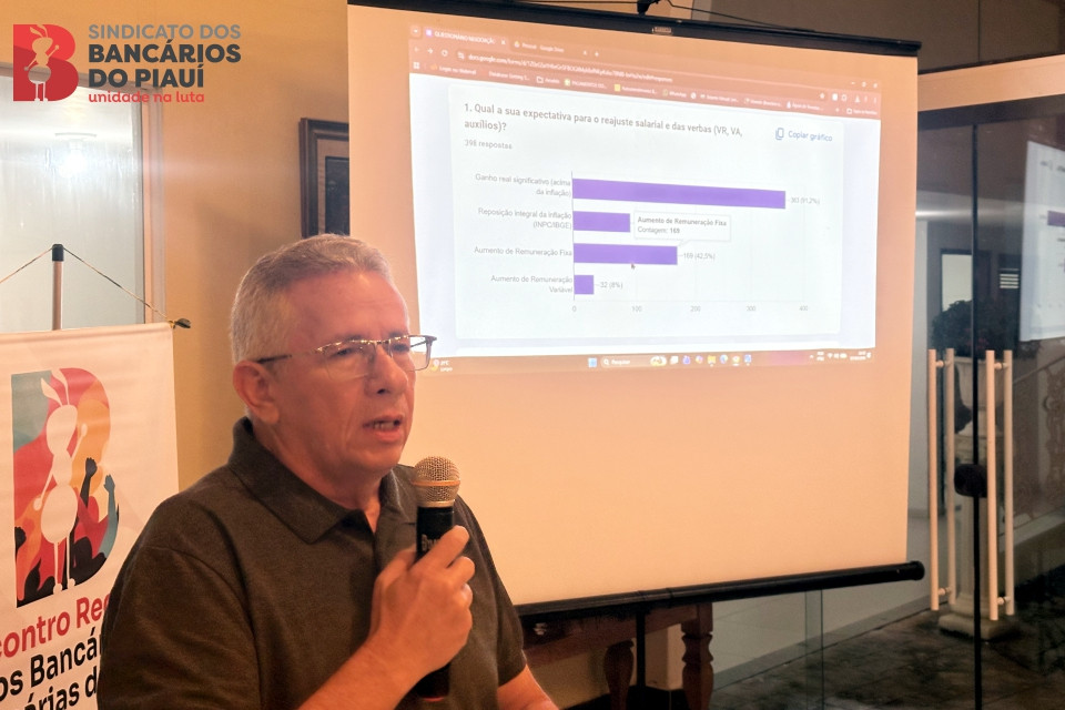 Para o presidente do Sindicato dos Bancários do Piauí, Gilberto Soares, o encontro cumpriu um papel essencial na construção coletiva das lutas da categoria: “Esse encontro mostra a importância da nossa presença na base, ouvindo os trabalhadores e transformando essas demandas em ações concretas. A pesquisa realizada nas agências nos dá um direcionamento claro para fortalecer nossa atuação e nos preparar para a Campanha Nacional 2026”, destacou.